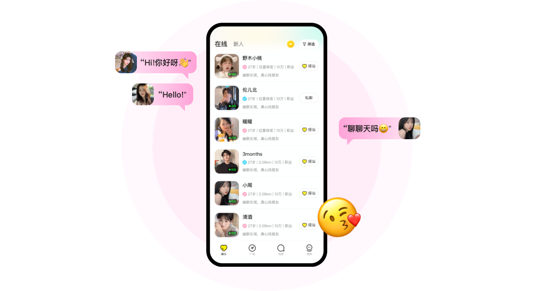 不再为发出的消息石沉大海而苦恼,系统自动为您牵线,搭讪秒回,无需等待。